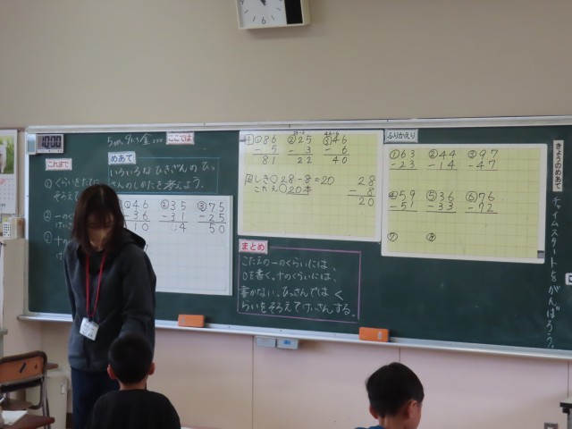 5月9日(金)2年生算数 公開日 2025/05/09 更新日 2025/05/09 できごと(2025) 2年生の算数はいろいろなひき算の筆算の仕方について考えていました。教科書や先生が出した問題を真剣に解いていました。