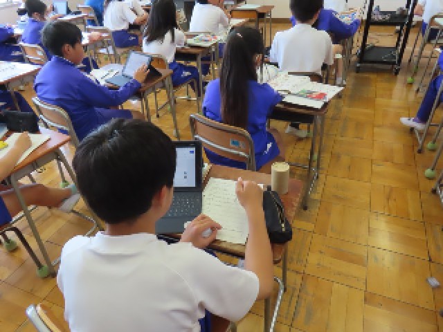 5月13日(火)6年生外国語 公開日 2025/05/13 更新日 2025/05/13 できごと(2025) 6年生の外国語はスピーチへ向けての準備をしていました。自分の話すスピーチ原稿を仕上げて発音の練習をしていました。