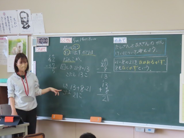 5月14日(水)2年生算数 公開日 2025/05/14 更新日 2025/05/14 できごと(2025) 2年生の算数は、たし算とひき算の関係について考えていました。「ひかれるかず」「ひくかず」という言葉が出てきました。