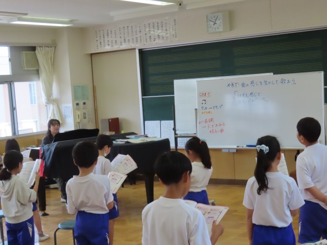 5月20日(火)4年生音楽 公開日 2025/05/20 更新日 2025/05/20 できごと(2025) 4年生の音楽は「曲の感じを生かして歌おう」をめあてに取り組んでいました。「いいこと ありそう」の曲をみんなで元気よく歌っていました。