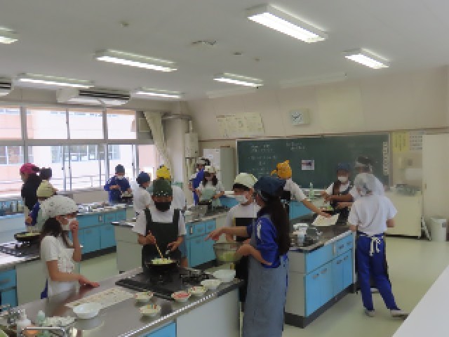 5月21日(水)6年生家庭科 公開日 2025/05/21 更新日 2025/05/21 できごと(2025) 6年生の家庭科では調理実習で野菜炒めを作っていました。学習したことを生かして楽しみながら取り組んでいました。自分の作った料理の味は格別でした。