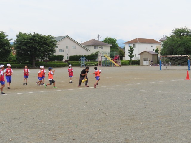 5月23日(金)4年生体育 公開日 2025/05/23 更新日 2025/05/23 できごと(2025) 4年生が体育の学習でリレーをしていました。チームでバトンパスの練習をした後に、記録を測定していました。見ている子も元気よく応援していました。