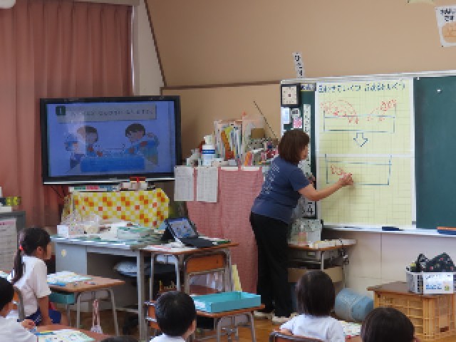 1年生が「あわせて いくつ」の学習に入りました。いよいよ、たし算の学習が始まります。