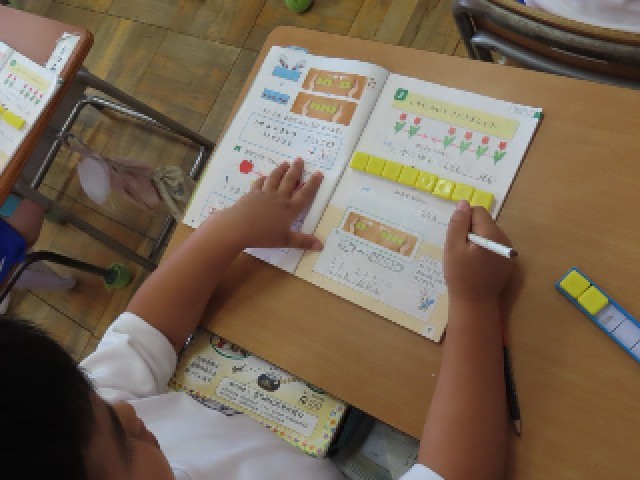 5月27日(火)1年生算数 公開日 2025/05/27 更新日 2025/05/27 できごと(2025) 1年生の算数はたし算の学習をしています。今日は2+4のたし算に取り組んでいました。ブロックを使いきちんと学習できていました。