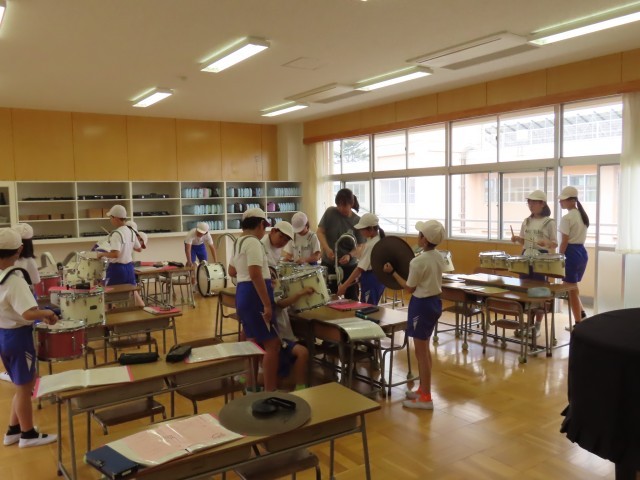 6年生のマーチング練習は、パートごとの練習でした。合同の練習へ向け各自頑張っていました。