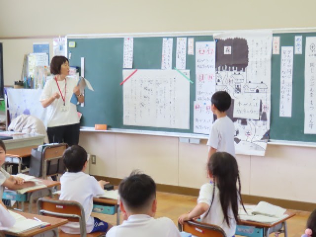 2年生が国語の学習をしていました。今日は同じ部分をもつ漢字を見つけて発表していました。