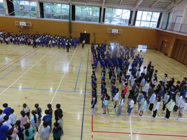 今朝の業前活動は今年度最初の音楽集会でした。全校児童で歌う歌声はとても迫力のあるものでした。みんな気持ちよく歌うことができました。