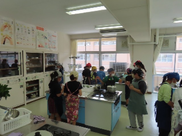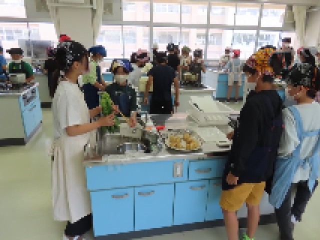 5年生が家庭科で調理実習をしていました。今日はじゃがいもとほうれんそうをゆでる料理を作っていました。みんな楽しそうみに活動していました。