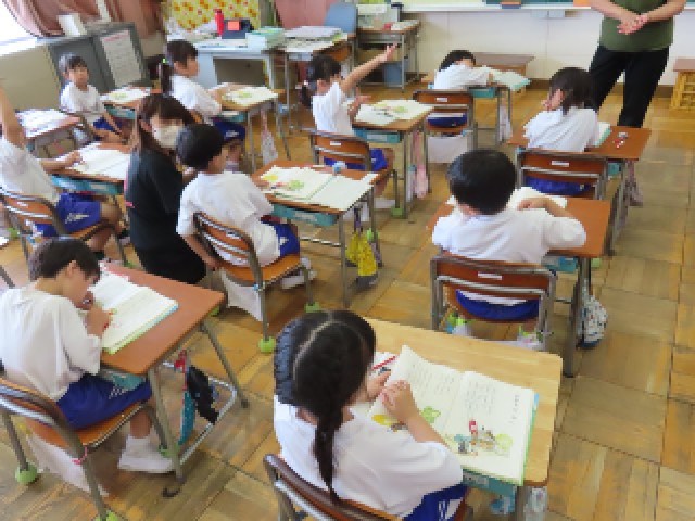 6月20日(金)1年生国語 公開日 2025/06/20 更新日 2025/06/20 できごと(2025) 1年生の国語は物語文「おおきな かぶ」の学習に入りました。今日は先生と一緒に音読をしていまいた。とても有名な物語です。がんばって学習してほしいです。