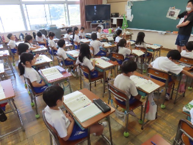 6月27日(金)3年生国語 公開日 2025/06/27 更新日 2025/06/27 できごと(2025) 3年生が国語の学習をしていまいた。今日は本などを使って調べたときの引用の仕方を教科書を使って学習していました。