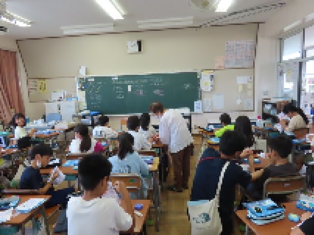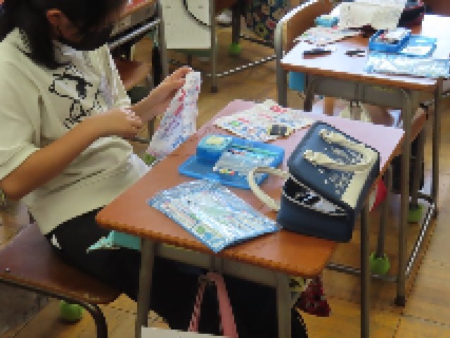 5年生の家庭科では裁縫の学習をしています。今日は本返し縫いと半返し縫いをマスターしようとがんばっていました。ボランティアの方にも協力していただき、丁寧に教えてもらいました。