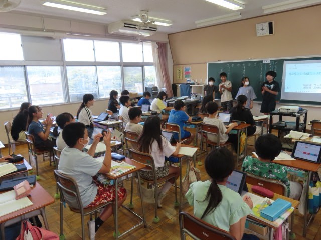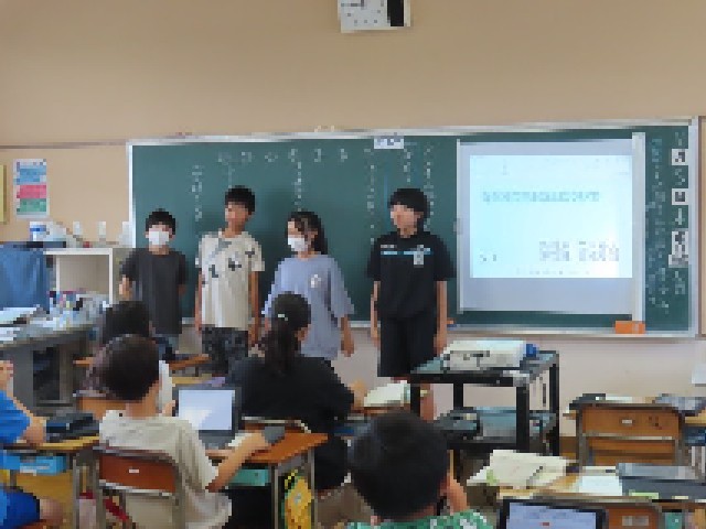 7月3日(水)6年生国語 公開日 2025/07/03 更新日 2025/07/03 できごと(2025) 6年生が国語の学習で「デジタル機器と私たち」の学習をしていました。今日は各班でまとめた提案を発表して、発表のよいところを伝え合っていました。