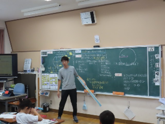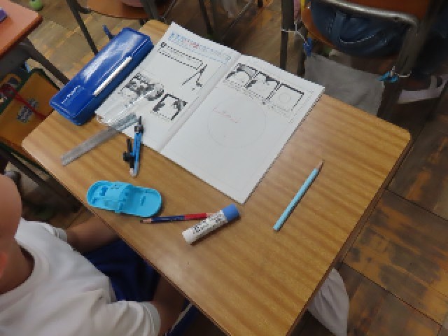 3年生が算数で円の学習をしていました。今日はコンパスを使っての円のかき方を学習していました。