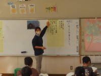 1年生の国語では物語文「たぬきの糸車」の学習をしています。今日は最初の授業だ...