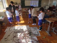2年生はサツマイモを栽培しています。今日は、収穫の前にサツマイモのつるを使ってリ...
