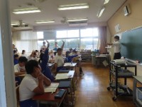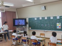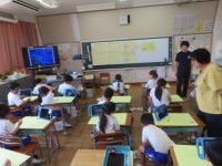 3年生の外国語活動では、「だれでしょうクイズを楽しもう」というめあてのもと、学習...