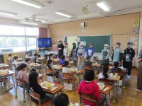 今日から給食が始まりました。1年生にとっては楽しみにしていた初めての給食で、配膳や準備は6年生が行い、1年生は席について待ちながら、わくわくした様子で給食の時間を迎えていました。しばらくは6年生が準備...