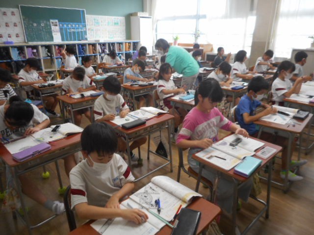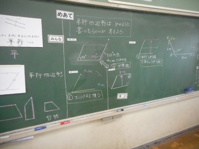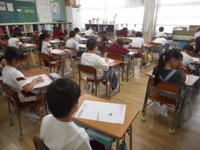 算数は平行四辺形の書き方を考えたり、国語はテストに取り組んだりしました