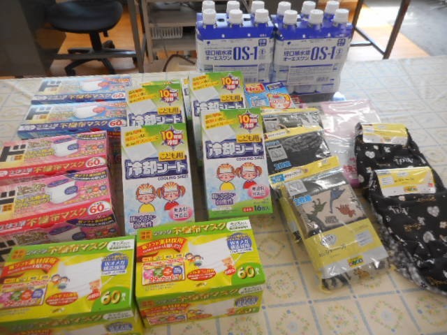 9月8日(月)民生委員協議会からの贈り物 公開日 2025/09/08 更新日 2025/09/08 2025できごと 藤岡市の民生委員協議会様から、児童のためにとマスク、冷却シート、下着、OS1をいただきました。ありがとうございます。
