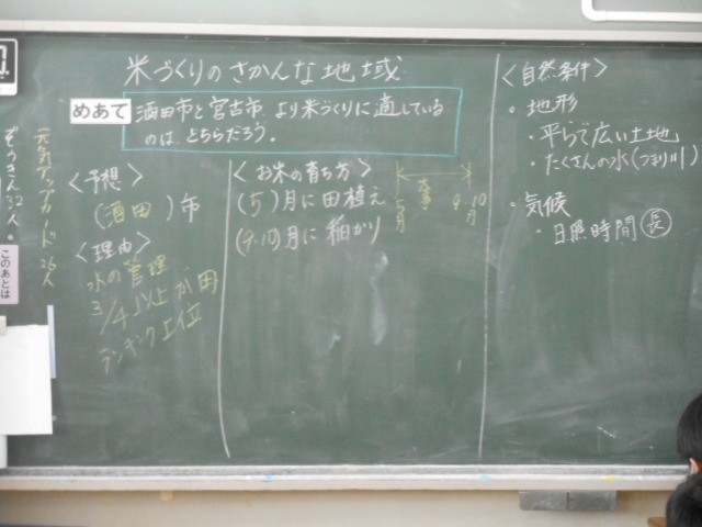 酒田市と宮古市のどちらが米作りに向いているか、資料を基に考えました