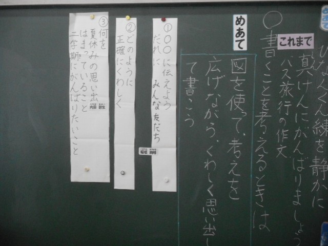 夏休みの思い出など、考えを広げながら詳しくかけるようにしていきます