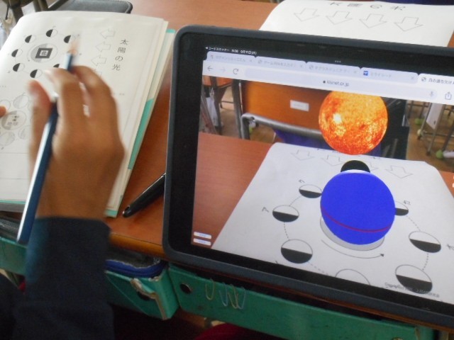 月が日によって形が違って見えるのはなぜか、タブレットのアプリなどを使って考えました