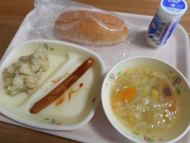背割りパン、ジョア、ソーセージのケレーケチャップソース、ABCスープ、ジャーマンポテト