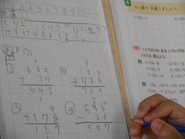 くり上がりとくり下がりに気をつけながら練習問題に取り組みました