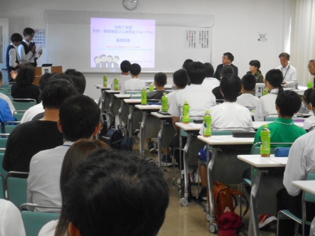 多野藤岡地区の小、中、高の代表児童生徒が集まり、いじめをなくしていくにはどうしたらよいのか話し合いました。