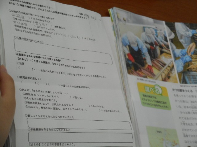 鰹節などの水産加工品の産業について学習しています