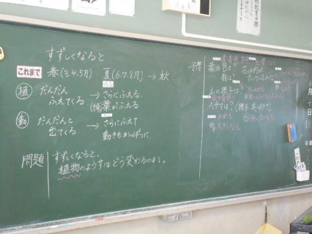夏を過ぎて涼しくなると、植物にはどのような変化が起こるか予想して、画像や実物を見ながら考えました
