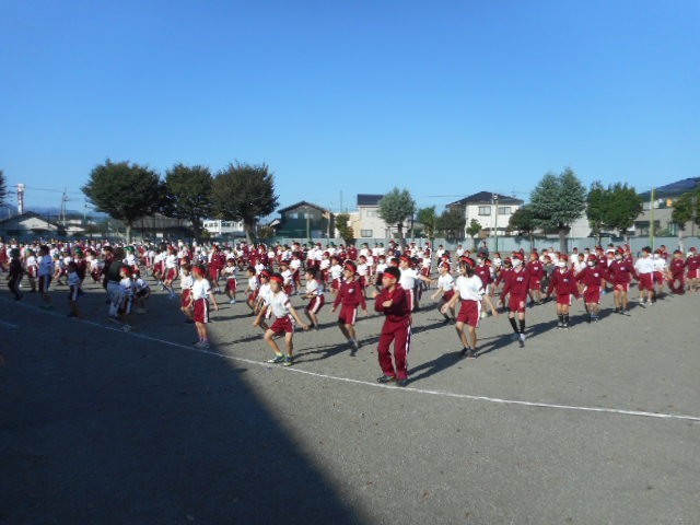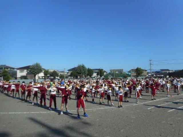 ラジオ体操への隊形変化、ラジオ体操の練習を行いました