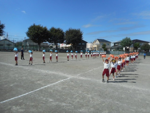 校庭での初めての練習をしました