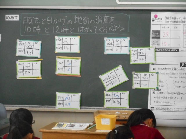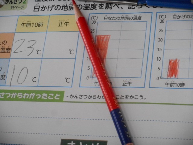 日なたと日かげの温度を比べ、その差の理由を考えました