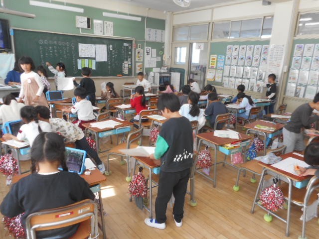 「しらせたいな見せたいな」の作文の続きを行ったり、漢字の成り立ちの学習を行ったりしました