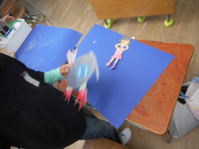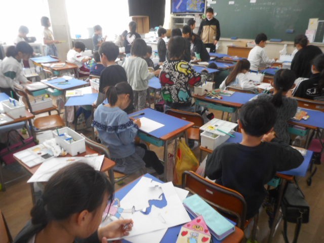 絵を切り取ったり、台紙の飾りをしたり、作品作りを進めています