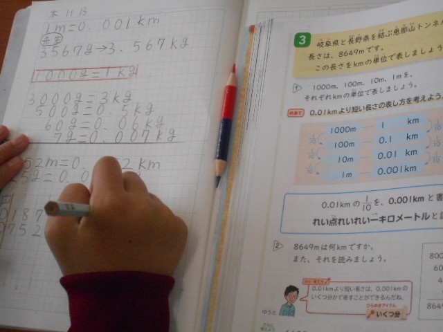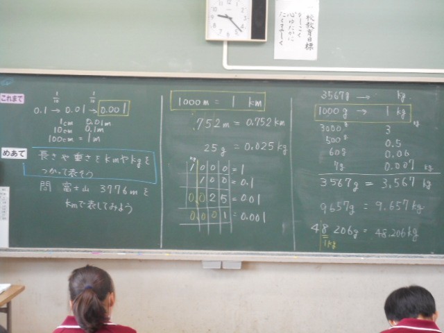 gをkg、cmをmなど、小数での表し方を考えました