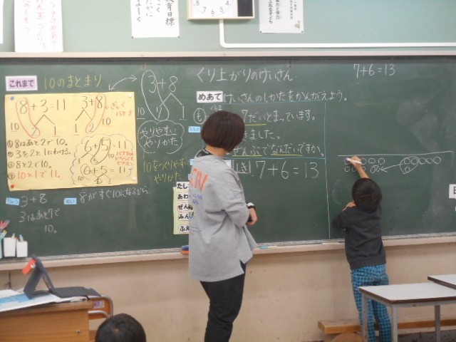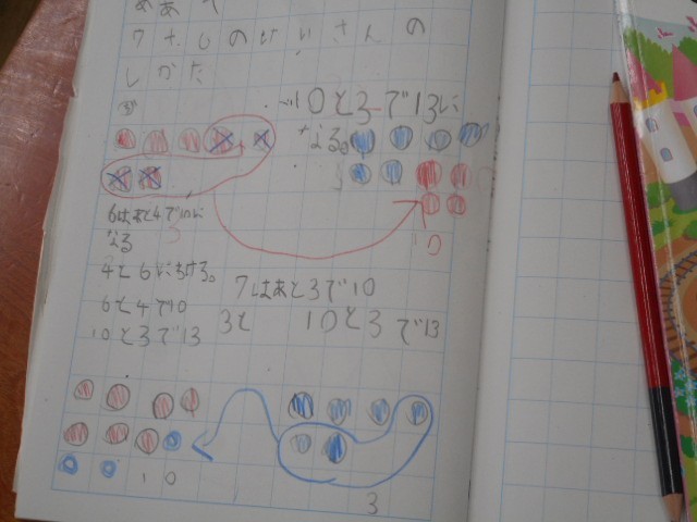 答えが10より大きくなる計算をさくらんぼ計算で考えています