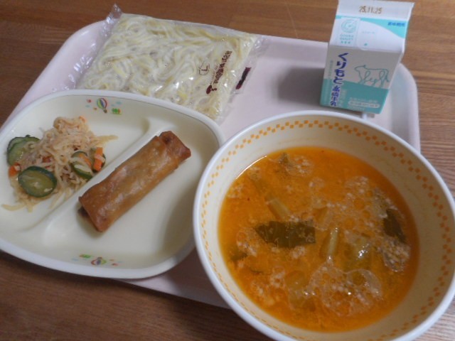 パック中華めん、牛乳、春巻き、ミルク担々麺、切り干し大根のナムル