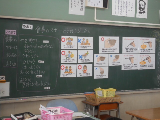お箸の持ち方、食器の配置、食べ方など、みんなが気持ちよく食べられるように食事中のマナーについて考えました