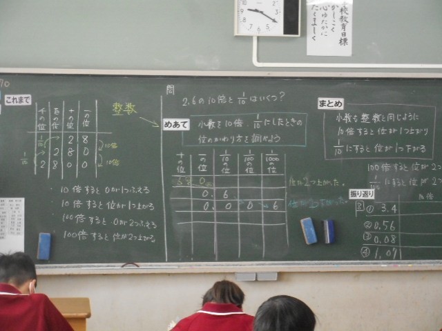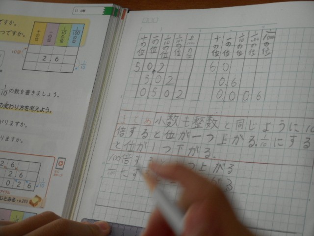 小数を10倍、10分の1にしたときの位の変わり方を考えました