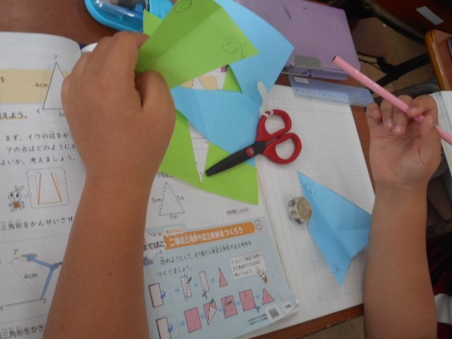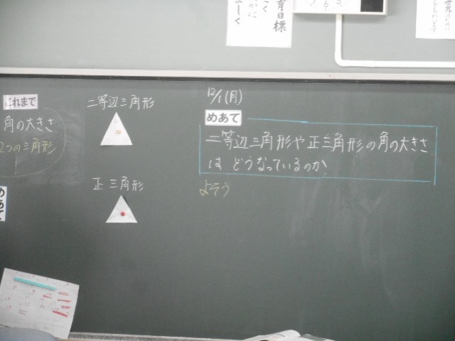 二等辺三角形と正三角形の角の大きさの規則性について考えました