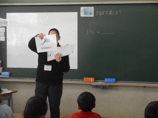 身のまわりの物を尋ねるゲームで楽しみました