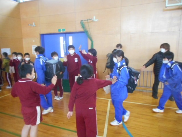 帰りに、第二小児童が作ったクラフトをプレゼントしました