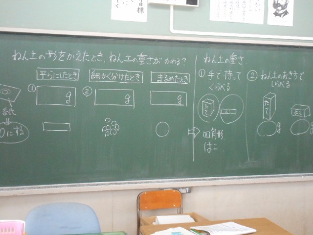 物は形は変わると重さが変わるのか、粘土で実験して考えました