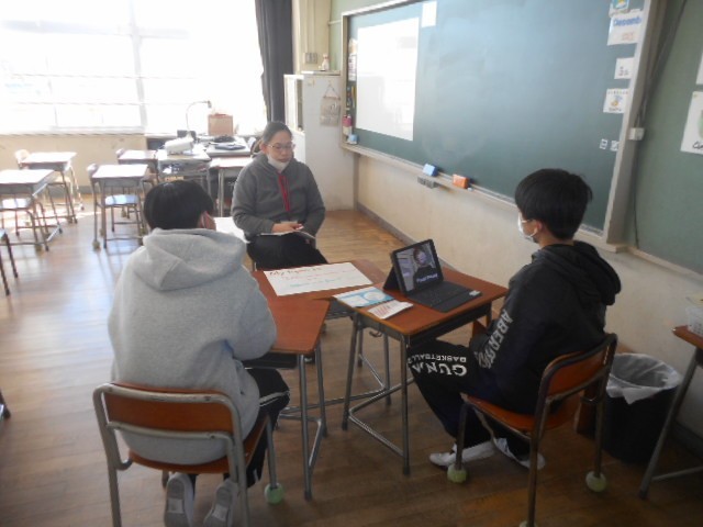 「Save the animals !」で調べたことなどをペアやALTの先生と会話しました