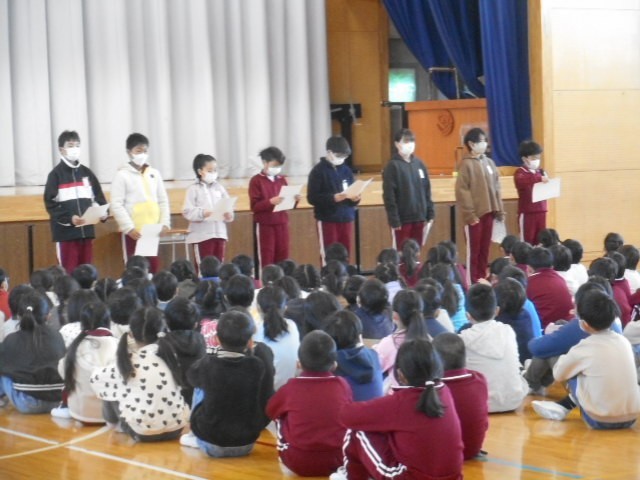 後期の学級役員、専門委員会役員に任命状を渡しました。