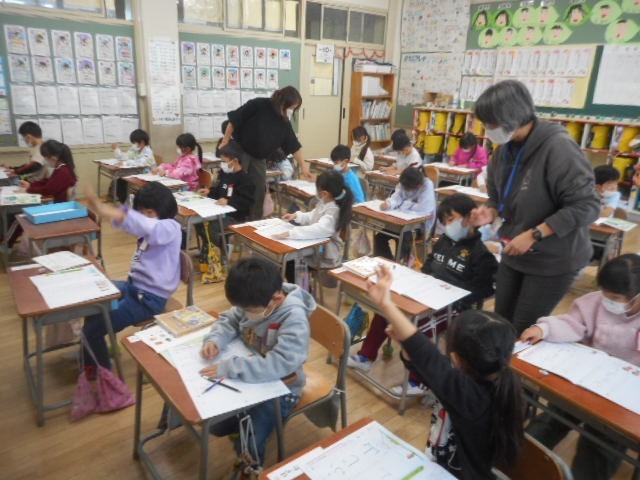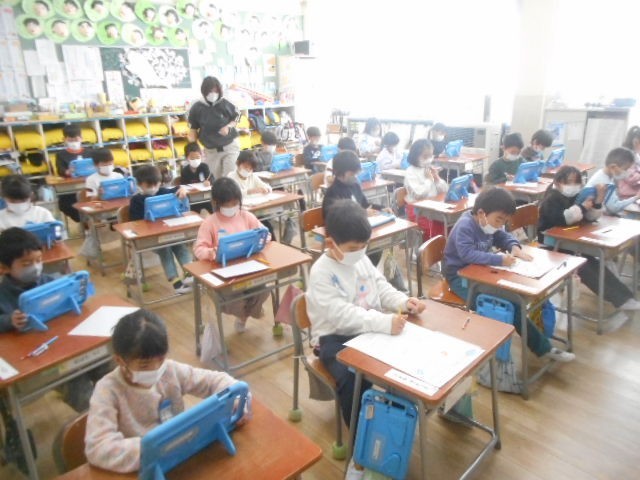 書き方の学習やタブレットでの算数の復習問題に取り組みました