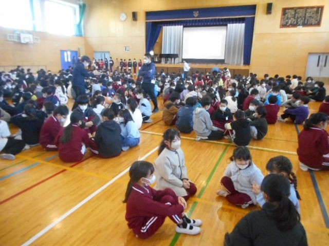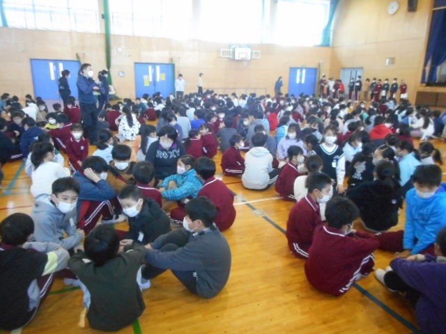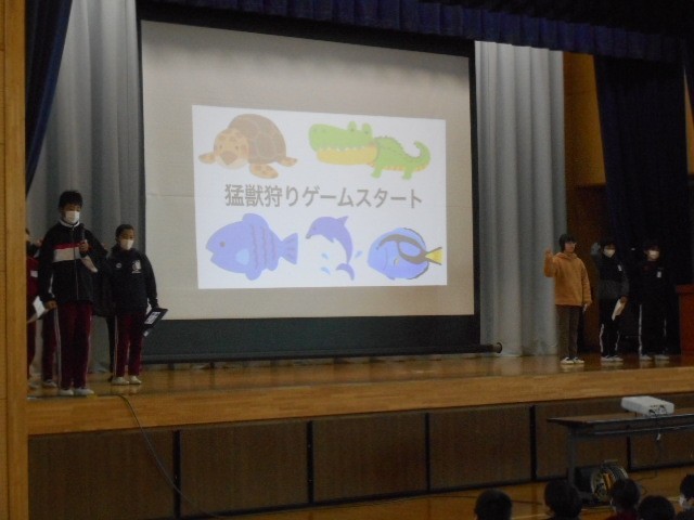ふれあい週間にちなみ、児童会の代表委員会主催で1年生から6年生が、より仲良くなれるようなゲームをしました。