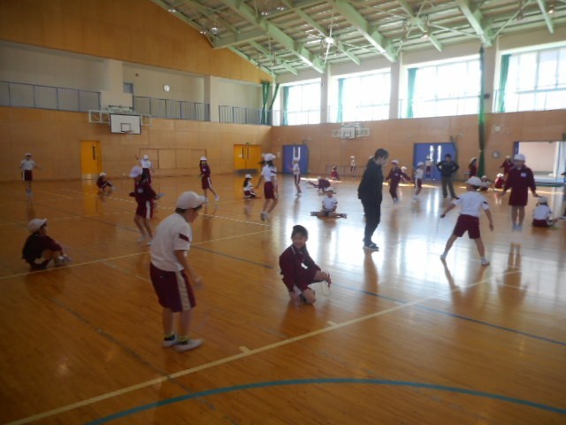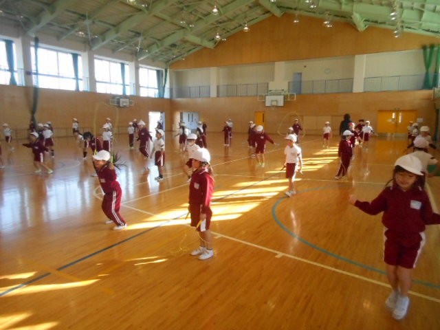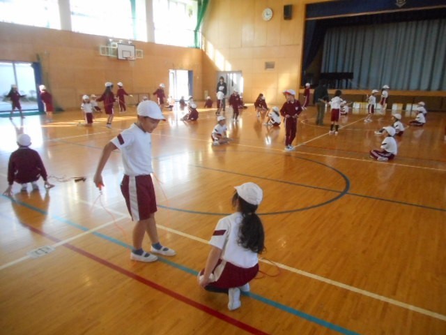 なわとびカードをもとに、グーパーとびや交差とびなど、楽しく体を動かしました
